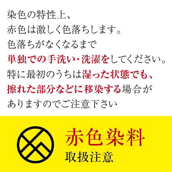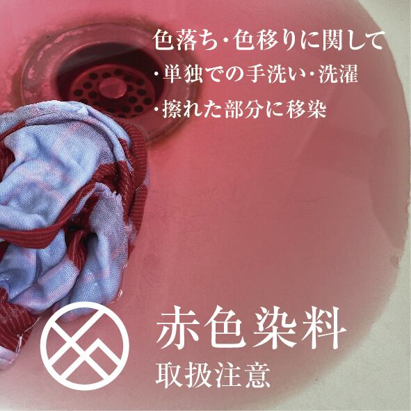 こちらの商品は染色の特性上、赤色が激しく色落ちします。